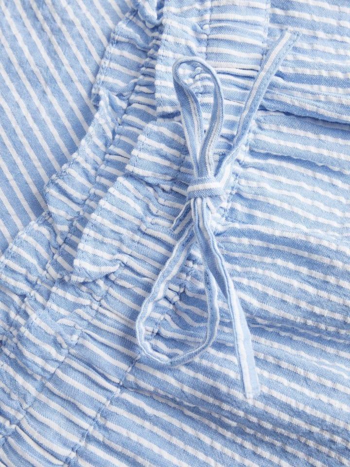 Встречайте лето в легком пляжном стиле, который создает свежий и яркий образ. Сирсакер - легкая и дышащая ткань с крепированной поверхностью, создающая приятную прохладу. - Тип изделия: шорты - Карманы: передние карманы - Талия: высокая - Детали: кулиска на талии, эластичный пояс - Покрой: свободный - Шорты - Детали - Материал: 100% хлопок