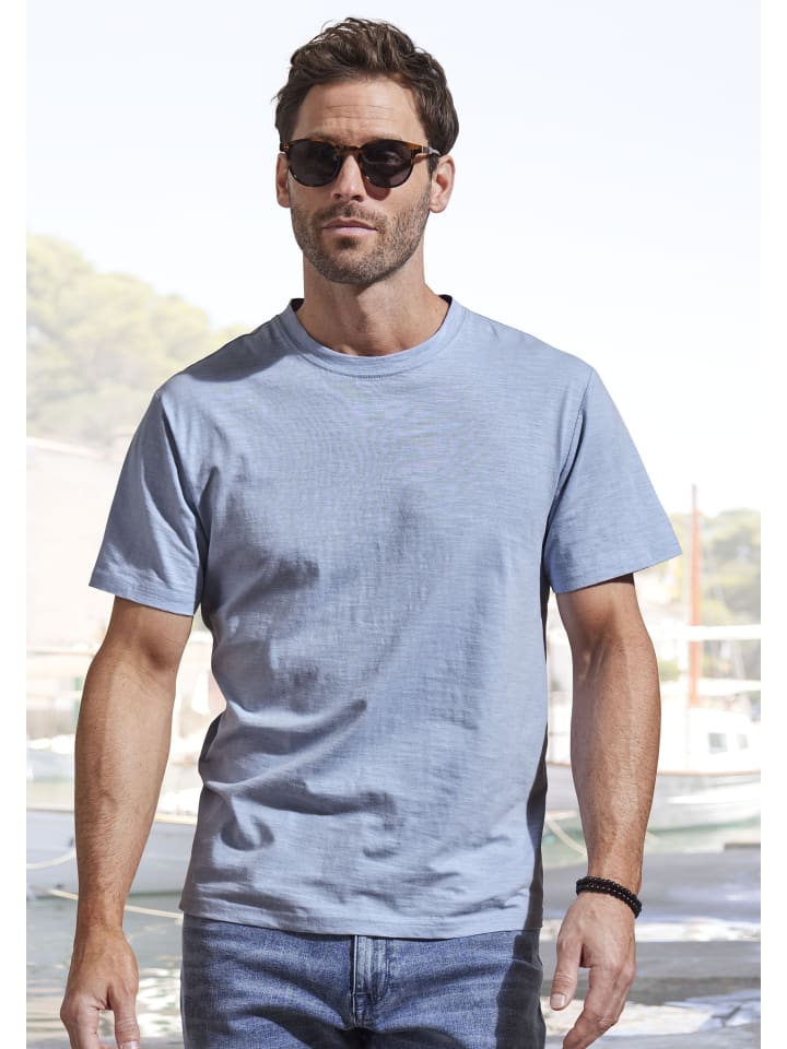 Рубашка с короткими рукавами от JOHN DEVIN с круглым вырезом. Привлекательный фактурный вид благодаря пряже с утолщением. Изготовлена из мягкого хлопка.