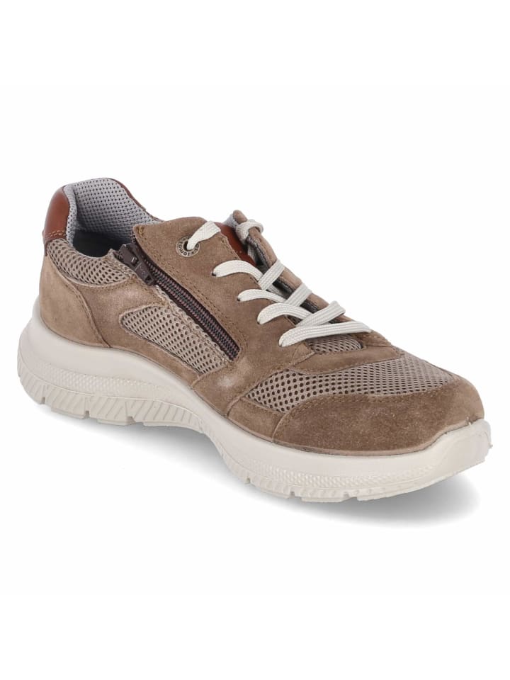 Мужские полуботинки Jomos из серой кожи и текстиля сочетают в себе спортивный дизайн и исключительный комфорт. Сочетание шнурков и молнии позволяет легко надевать и снимать обувь, а сетчатые вставки обеспечивают оптимальную воздухопроницаемость. Усиленные носок и пятка обеспечивают дополнительную защиту и устойчивость при повседневной носке. Мягкий бортик обеспечивает удобную посадку, а мягкая съемная стелька позволяет регулировать комфорт. Изящные фирменные детали подчеркивают высокое качество изготовления. Гибкая, нескользящая подошва гарантирует надежное сцепление с различными поверхностями. Благодаря сверхкомфортной ширине H эти низкие туфли идеально подходят для мужчин, которые ценят комфорт и функциональность.
