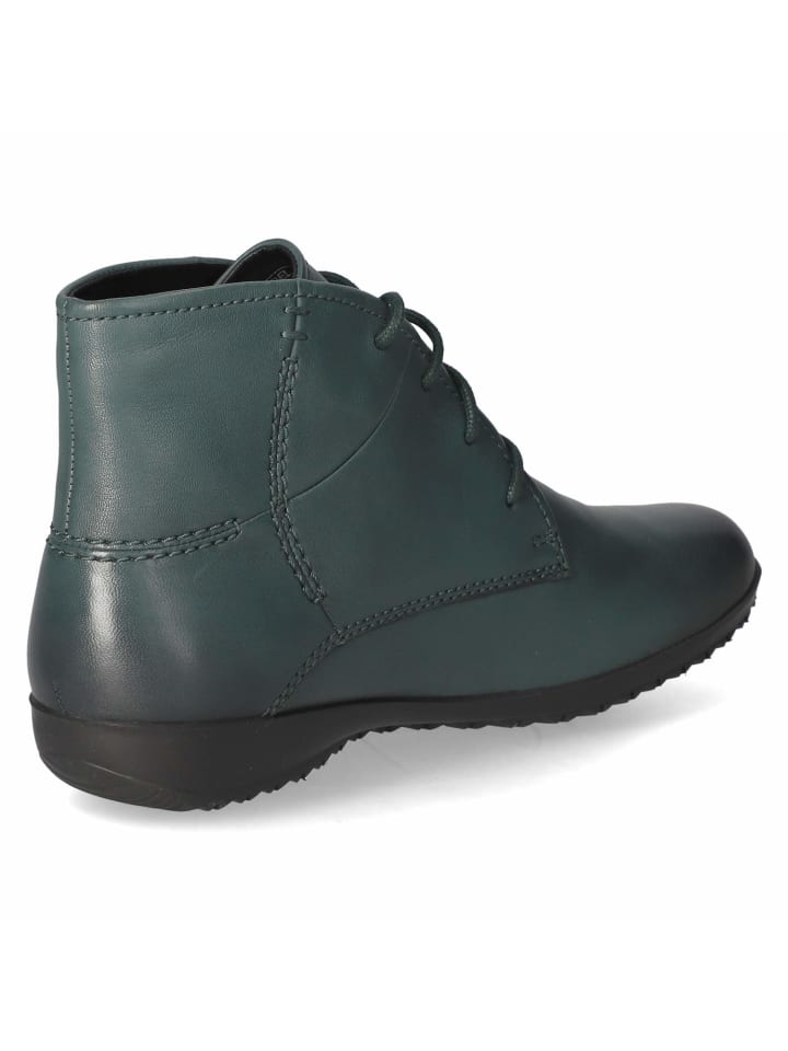 Зеленые ботильоны на шнуровке NALY 09 от JOSEF SEIBEL из мягкой гладкой кожи сочетают в себе деревенский шарм и исключительный комфорт для межсезонья. Прочная шнуровка обеспечивает индивидуальную посадку, а декоративная строчка в деревенском стиле и изящные фирменные детали придают модели неповторимый шарм. Усиленная пятка стабилизирует стопу, а легкая флисовая подкладка приятно согревает и дарит особый комфорт даже в прохладные дни. Мягкая съемная стелька обеспечивает мягкость и комфорт при ходьбе без усталости, а гибкая нескользящая подошва обеспечивает надежное сцепление с различными поверхностями. В сочетании с трикотажным платьем, джинсами или леггинсами и шерстяным пальто вы создадите стильный образ, гармонично сочетающий комфорт и естественные цвета - изысканная альтернатива для ценителей практичного качества и по-настоящему удобная модель в ценовом сегменте ниже многих дизайнерских брендов с аналогичными характеристиками.