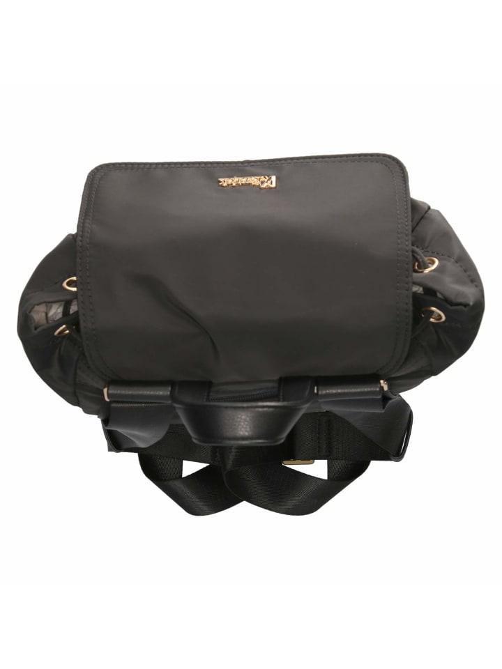 Черный женский рюкзак с золотыми акцентами и едва заметным логотипом бренда, сочетающий в себе городской шик и функциональность. Благодаря компактным размерам (примерно 30 x 24 x 12 см) и объему (примерно 8,5 литров) он предлагает много места для самых необходимых вещей, оставаясь при этом приятно легким. Застежка на шнурок позволяет гибко открывать рюкзак, а два внешних кармана на молнии позволяют легко достать все необходимое. Внутри два накладных кармана и карман на молнии организуют содержимое, а усиленное дно обеспечивает устойчивость. Фиксированный ручной ремешок (примерно 15 см) и два регулируемых плечевых ремня (примерно до 90 см) обеспечивают универсальные варианты переноски. Модный совет: в сочетании с кремовым тренчкотом, джинсами прямого кроя и лоферами золотые детали выглядят особенно элегантно; Для вечерних образов рюкзак гармонично сочетается с атласной блузкой и минималистичными украшениями.