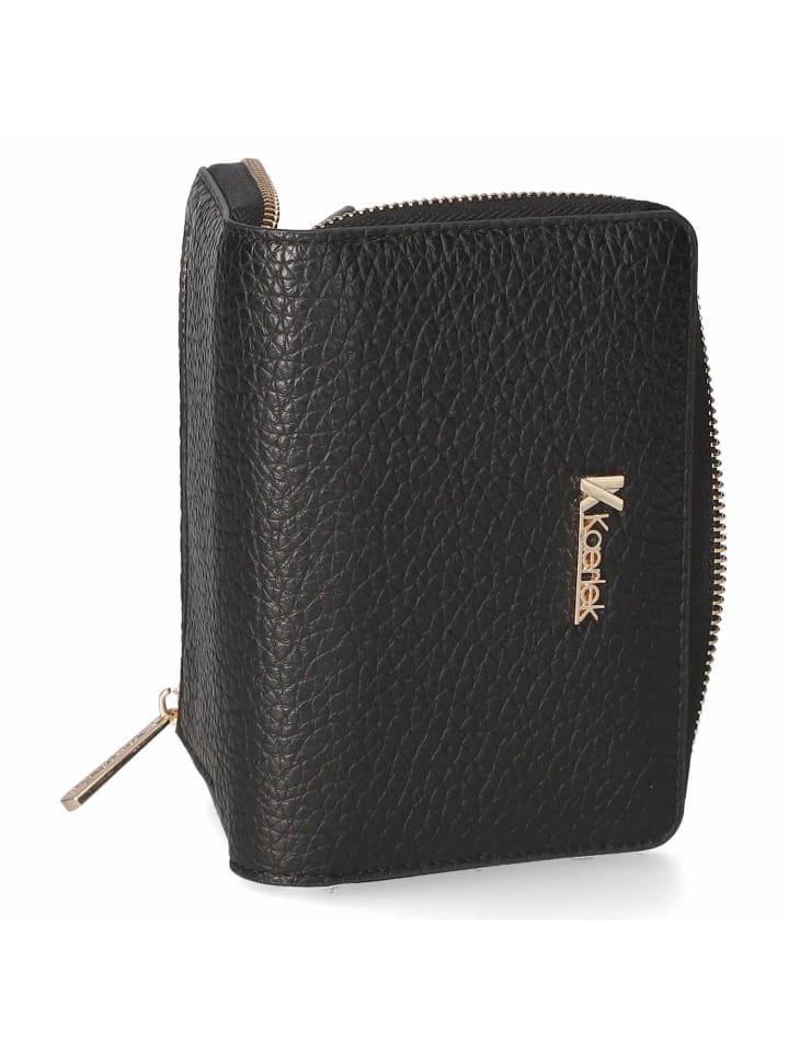 Этот элегантный женский кошелек отличается классическим сдержанным черным цветом и изысканными золотыми акцентами. Компактный размер (примерно 10 x 15 x 2,5 см) легко помещается в дамскую сумочку или вечернюю сумочку, а круговая молния надежно защищает содержимое. Дополнительное отделение на молнии снаружи обеспечивает быстрый доступ. Внутри 12 отделений для карт, отделение со смотровым окошком и отдельное отделение для монет на молнии обеспечивают изысканную организацию. Изящная надпись бренда подчеркивает высокое качество отделки и завершает современный дизайн. Прочная ручная работа сочетается с продуманной планировкой - идеальное решение для четкой организации без ущерба для стиля. Модный совет: черная сумка через плечо и золотые украшения создают гармоничный образ; блестящие детали создают роскошный акцент в сочетании с однотонными нарядами.