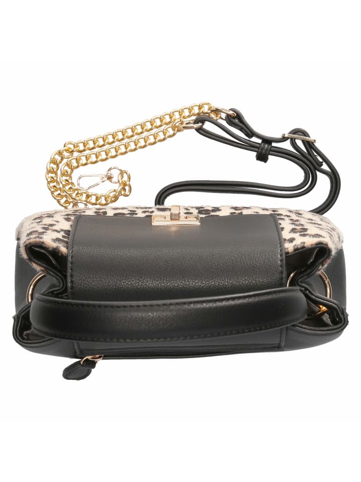 Неподвластный времени силуэт, модное заявление: эта черная женская сумка приобретает роскошный вид благодаря искусственному меху с леопардовым принтом спереди и золотистой фурнитуре. Компактная, размером примерно 17 x 24 x 8 см и объемом около 3 литров, усиленное дно поддерживает лаконичный дизайн. Надежная застежка с поворотным замком, два внутренних отделения на молнии и накладной карман позволяют аккуратно разместить все необходимое. Ручка длиной около 40 см удобно лежит в руке; съемная регулируемая плечевая цепочка длиной около 140 см превращает ее в элегантную сумку через плечо для вечернего выхода. Модный совет: сочетайте с маленьким черным платьем или атласной юбкой-комбинацией и узкими босоножками - золотые украшения стильно дополнят фурнитуру.