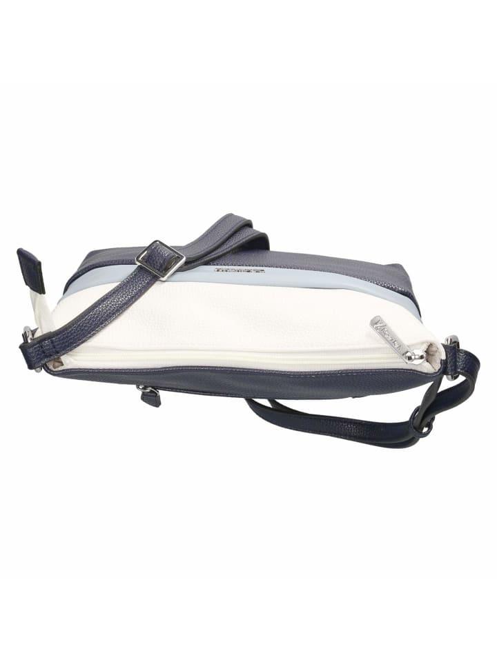 Женская сумка Kaerlek темно-синего цвета из синтетического материала сочетает в себе стильный дизайн и функциональность. Фирменный лейбл спереди, блестящие серебристые акценты и белые и серые акценты делают ее модным аксессуаром. Регулируемый плечевой ремень (прибл. 150 см) обеспечивает комфортную переноску, а усиленное дно - устойчивость. Два накладных кармана с магнитными застежками спереди обеспечивают быстрый доступ к важным вещам. Вместительное основное отделение на молнии продуманно до мелочей: оно включает в себя два накладных кармана, карман на молнии и два кармана для ручек. Размеры: прибл. 25 x 26 x 7 см (В x Ш x Г). Сочетайте эту сумку со светлым тренчем и темными ботинками челси, чтобы создать элегантный, неподвластный времени образ. Она идеально дополнит как повседневные, так и элегантные наряды.