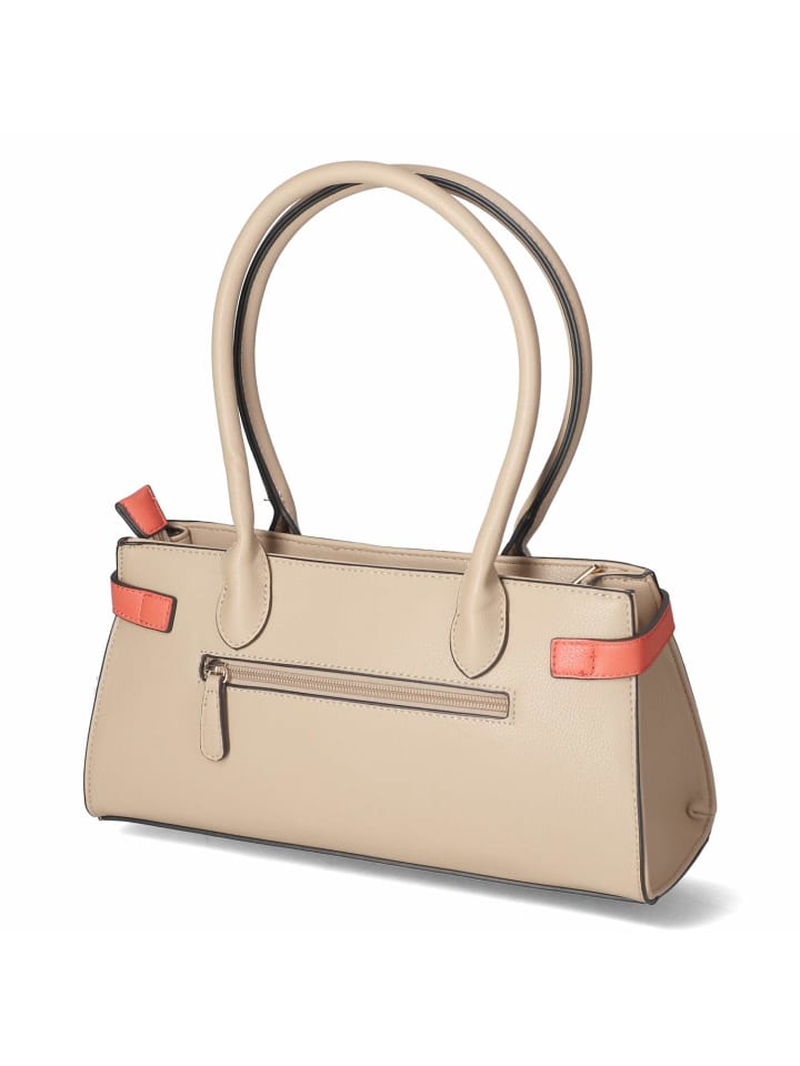 Эта женская сумка-мессенджер Kaerlek из бежевой искусственной кожи сочетает в себе элегантный дизайн и практичные детали. Золотистые акценты и ненавязчивый логотип бренда придают сумке изысканный вид, а оранжевый декоративный ремешок добавляет современный контраст. Два фиксированных плечевых ремня и съемный регулируемый плечевой ремень (примерно 140 см) обеспечивают универсальность переноски. Усиленное дно обеспечивает устойчивость, а отделение на молнии сзади обеспечивает быстрый доступ к важным вещам. Основное отделение на молнии имеет функциональный дизайн и оснащено внутренним накладным карманом и еще одним отделением на молнии для организованного хранения. Благодаря компактным размерам (примерно 15 x 32 x 9 см (В x Ш x Г)) сумка идеально подходит как для повседневного использования, так и для особых случаев. Идеально сочетается с элегантным или повседневно-шикарным стилем, обеспечивая стильный вид.