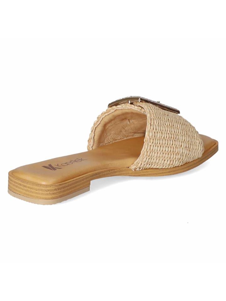 Женские мюли Kaerlek бежевого цвета сочетают в себе стильную элегантность и летний комфорт. Синтетический верх с плетеным сизалем придает модели естественный вид, а золотистая пряжка со сверкающими драгоценными камнями добавляет нотку гламура. Кожаная подкладка и мягкая кожаная стелька обеспечивают комфортную посадку даже в теплые дни. Благодаря гибкой нескользящей подошве вы будете наслаждаться надежным сцеплением с поверхностью при каждом шаге. Эти универсальные мюли идеально подходят для сочетания с воздушными летними платьями, легкими тканевыми брюками или элегантными юбками и обеспечат стильный внешний вид.