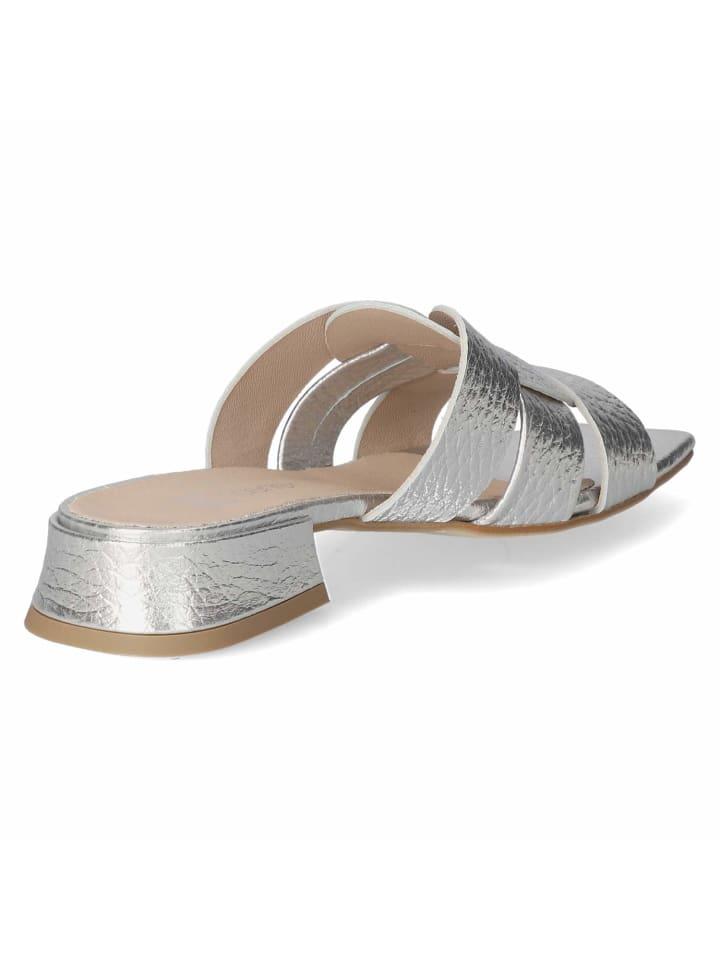 Женские мюли Kaerlek серебристого цвета из высококачественной гладкой кожи сочетают в себе стильный дизайн и исключительный комфорт. Плетеный декоративный элемент с тремя декоративными ремешками придает этим туфлям элегантный и современный вид. Мягкая кожаная подкладка обеспечивает удобную посадку, а мягкая кожаная стелька - дополнительный комфорт. Гибкая нескользящая подошва обеспечивает устойчивость и надежное сцепление на различных поверхностях. Эти мюли универсальны и идеально подходят как для летних повседневных образов, так и для элегантных нарядов. Идеально подходит для теплых дней, когда хочется стильно и комфортно.