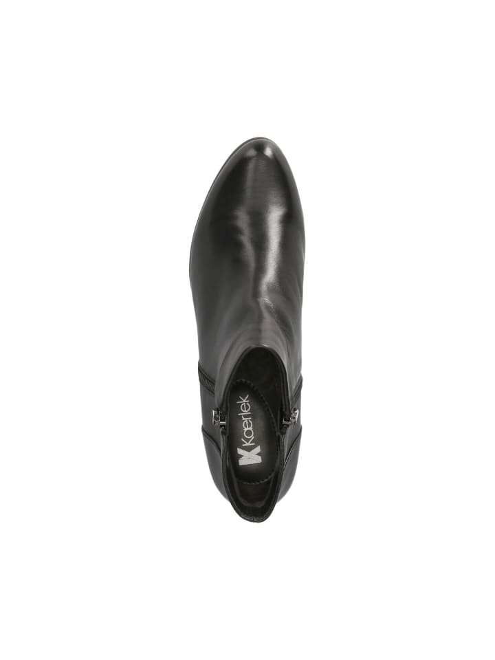 Женские ботильоны Kaerlek из гладкой черной кожи - стильное дополнение к любому гардеробу. Практичная молния обеспечивает легкое надевание и идеальную посадку. Усиленная пятка обеспечивает устойчивость, а мягкая текстильная подкладка - приятный на ощупь и комфорт.