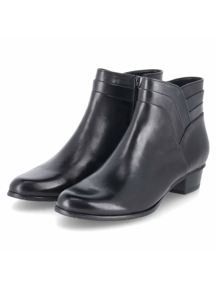 Kaerlek представляет черные ботильоны из прочной натуральной кожи с гладкой поверхностью и круглым носком. Благодаря стандартной посадке эти ботильоны легко впишутся в повседневный образ. Блочный каблук высотой 4 см с утонченным кубинским стилем обеспечивает устойчивость и женственный силуэт, а гибкая, цепкая подошва - надежную поддержку. Боковая молния обеспечивает удобный надевание. Легкая флисовая подкладка и стелька из кожи и текстиля обеспечивают приятный микроклимат в прохладные дни. Перекрывающиеся элементы голенища добавляют тонкие структурные акценты и подчеркивают вневременной образ. Свободный и легкий крой делает эти ботильоны универсальным дополнением с утра до вечера. Модный совет: сочетайте с укороченными джинсами и вязаным свитером для создания современного повседневного образа. В юбке миди и шерстяном пальто модель выглядит элегантно и в городском стиле.