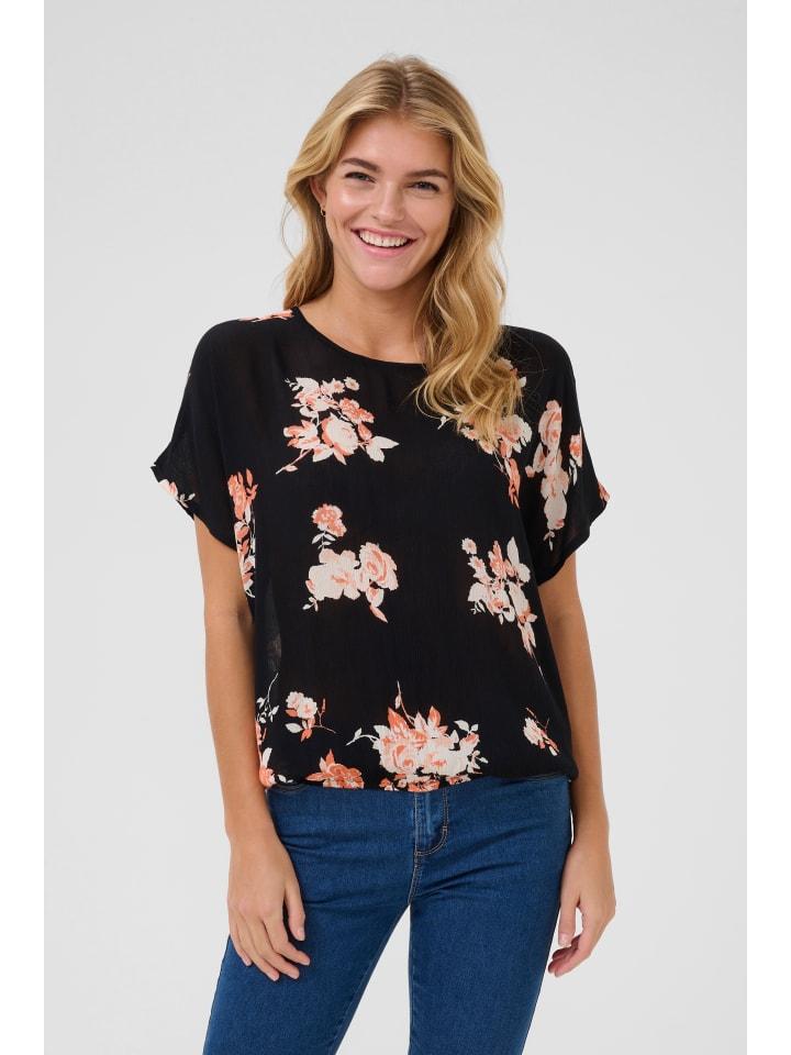 Эта блузка с принтом зебра имеет свободный крой, круглый вырез и короткие рукава. Воздушная и слегка прозрачная, она создает стильный и непринужденный образ.