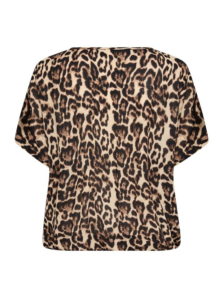Эта блузка с принтом зебра имеет свободный крой, круглый вырез и короткие рукава. Воздушная и слегка прозрачная, она создает стильный и непринужденный образ.
