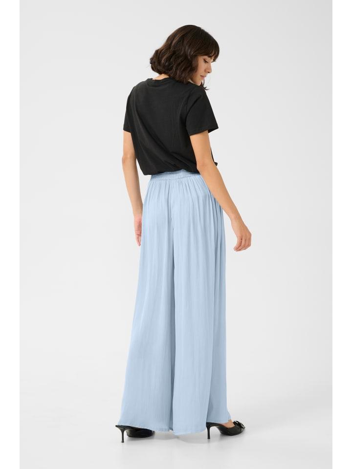 Черные брюки свободного кроя с плавным силуэтом. Изящные складки и свободные, удлиненные брючины создают современный образ.
