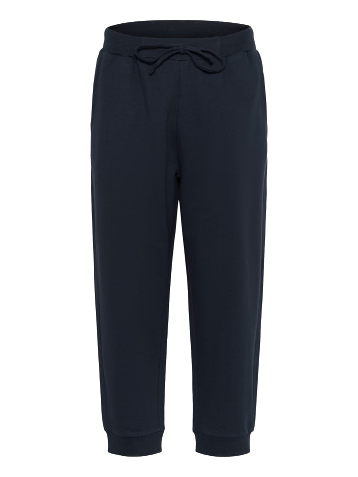Спортивные брюки прямого кроя с ребристыми манжетами по низу. Эластичный пояс со шнурком обеспечивает удобную, индивидуально регулируемую посадку.