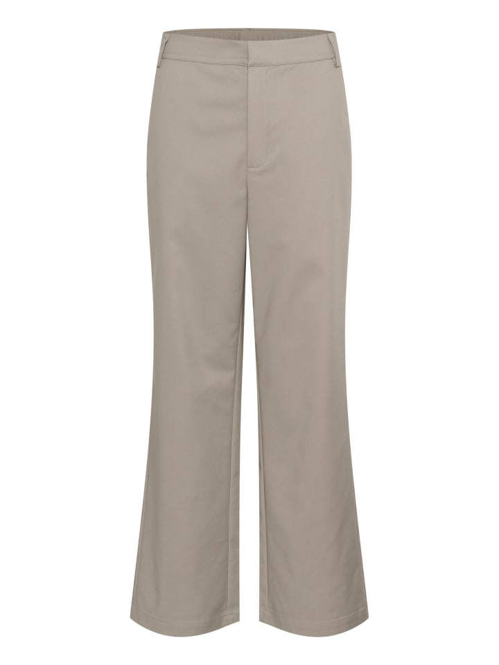 Брюки свободного кроя с высокой талией и классическим поясом. Гладкая поверхность создает современный минималистичный стиль.