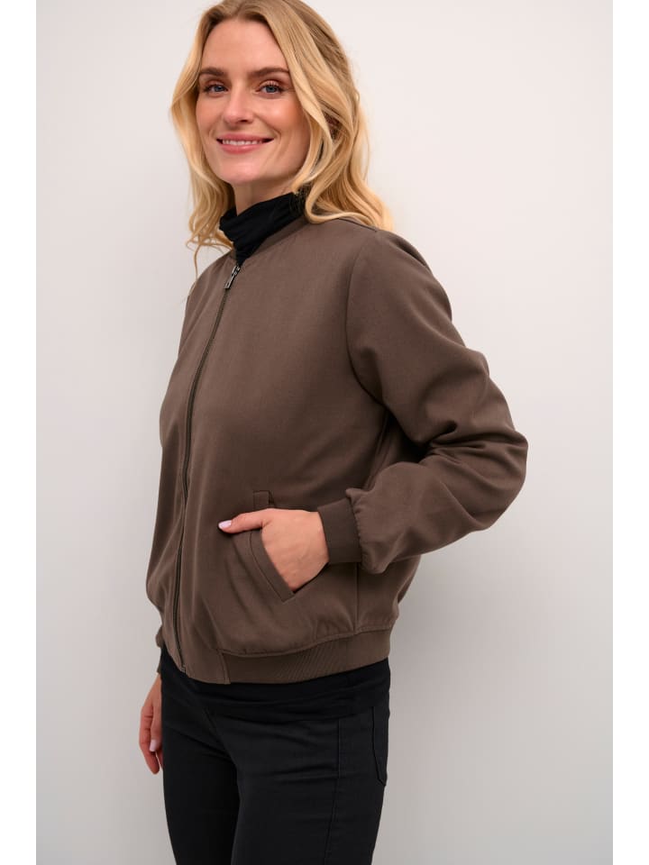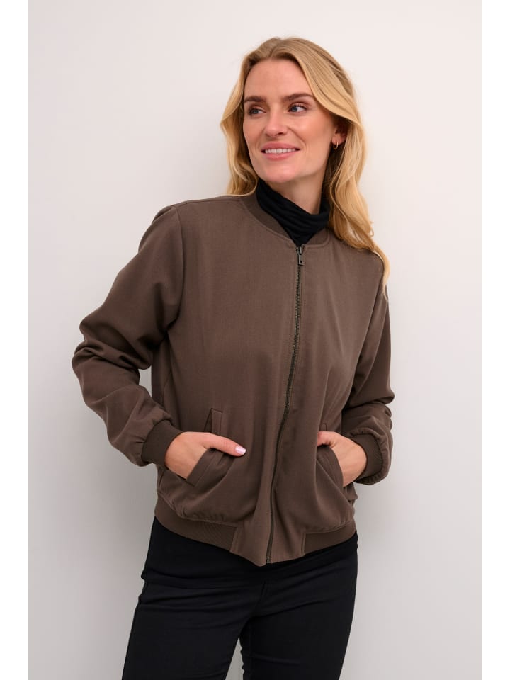 Эта куртка-бомбер прямого кроя с ребристым воротником, длинными рукавами и застежкой-молнией спереди. Простые боковые карманы и манжеты создают современный образ.