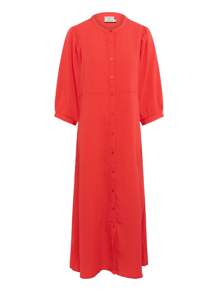 Платье миди с фактурной отделкой, прямым кроем и круглым вырезом. Рукава три четверти и планка с пуговицами подчеркивают образ.