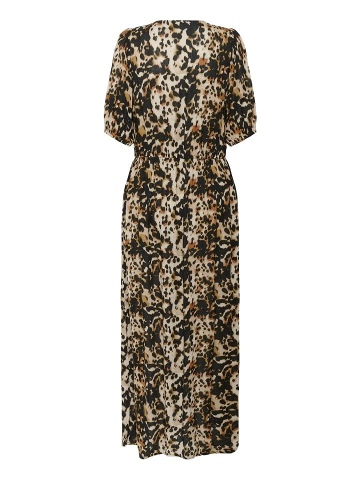 Платье макси с анималистичным принтом, V-образным вырезом, короткими рукавами и плавно ниспадающим силуэтом. Слегка присборенная талия для современного стиля.