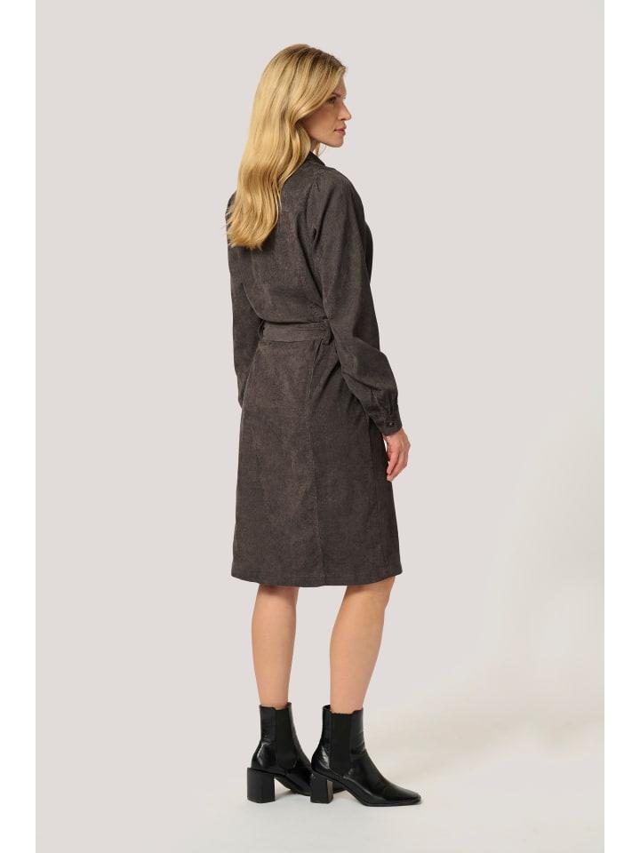 Платье-рубашка с застежкой на пуговицы, классическим воротником и длинными рукавами. Завязывающийся пояс подчеркивает талию. Мягкая текстура.