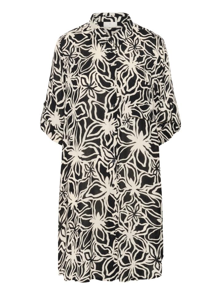 Платье-рубашка свободного кроя с геометрическим узором, планкой на пуговицах, классическим воротником и рукавами длиной 3/4. Современный, струящийся крой с эффектным внешним видом.