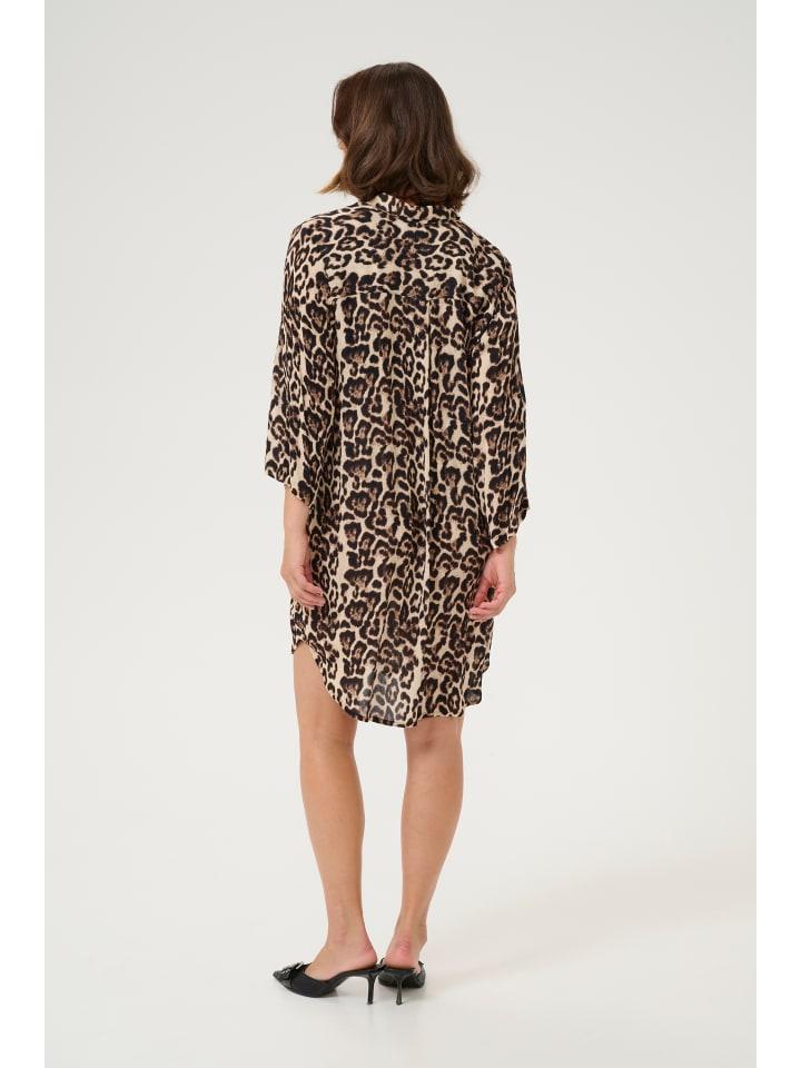 Платье-рубашка свободного кроя с геометрическим узором, планкой на пуговицах, классическим воротником и рукавами длиной 3/4. Современный, струящийся крой с эффектным внешним видом.
