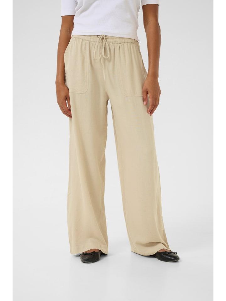 Брюки свободного кроя прямого покроя с эластичным поясом и кулиской. Два накладных кармана спереди и мягкая поверхность по всей длине.