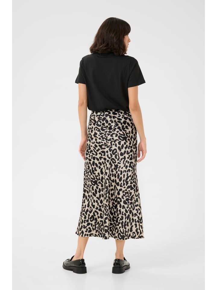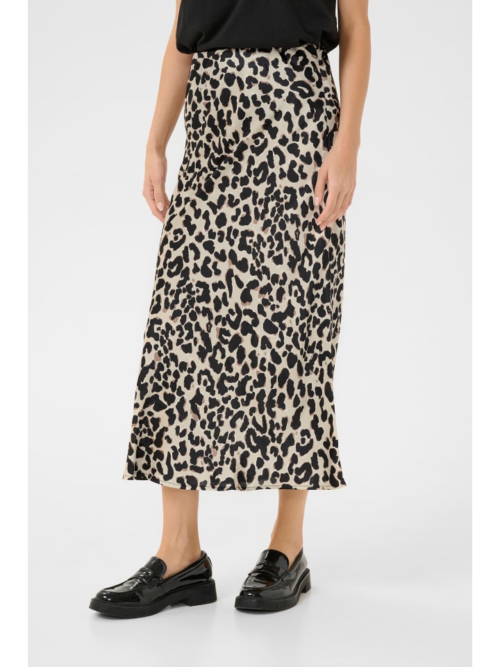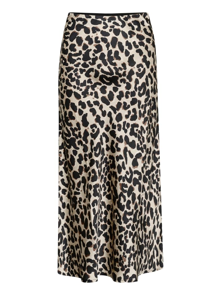 Юбка-комбинация с анималистичным принтом и слегка мерцающей отделкой. Прямой крой, высокая талия и длина до щиколотки.