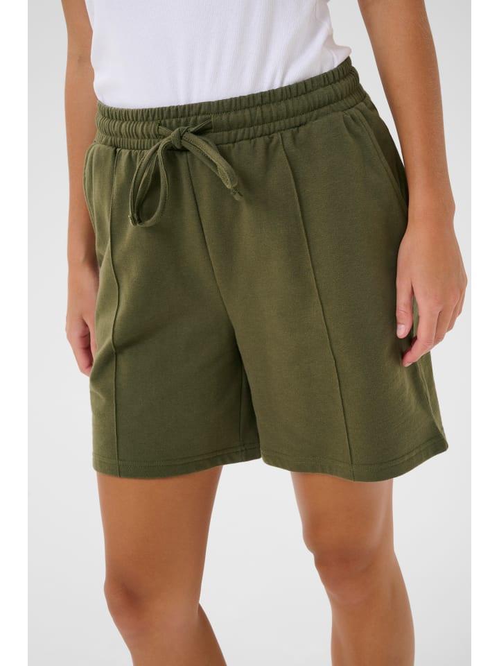 Шорты с эластичным поясом, кулиской и прямым, удобным кроем. Мягкий крой, боковые карманы и аккуратные строчки по низу.