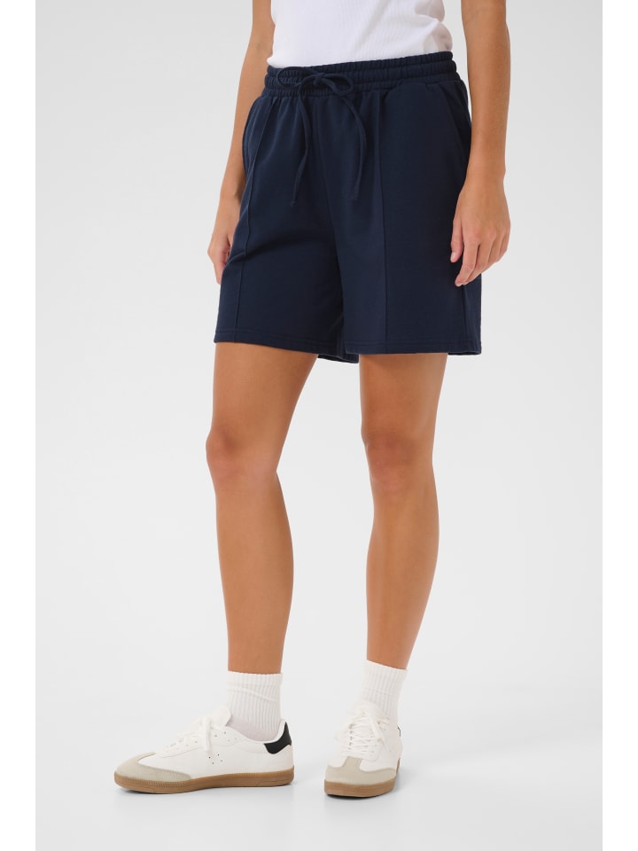 Шорты с эластичным поясом, кулиской и прямым, удобным кроем. Мягкий крой, боковые карманы и аккуратные строчки по низу.