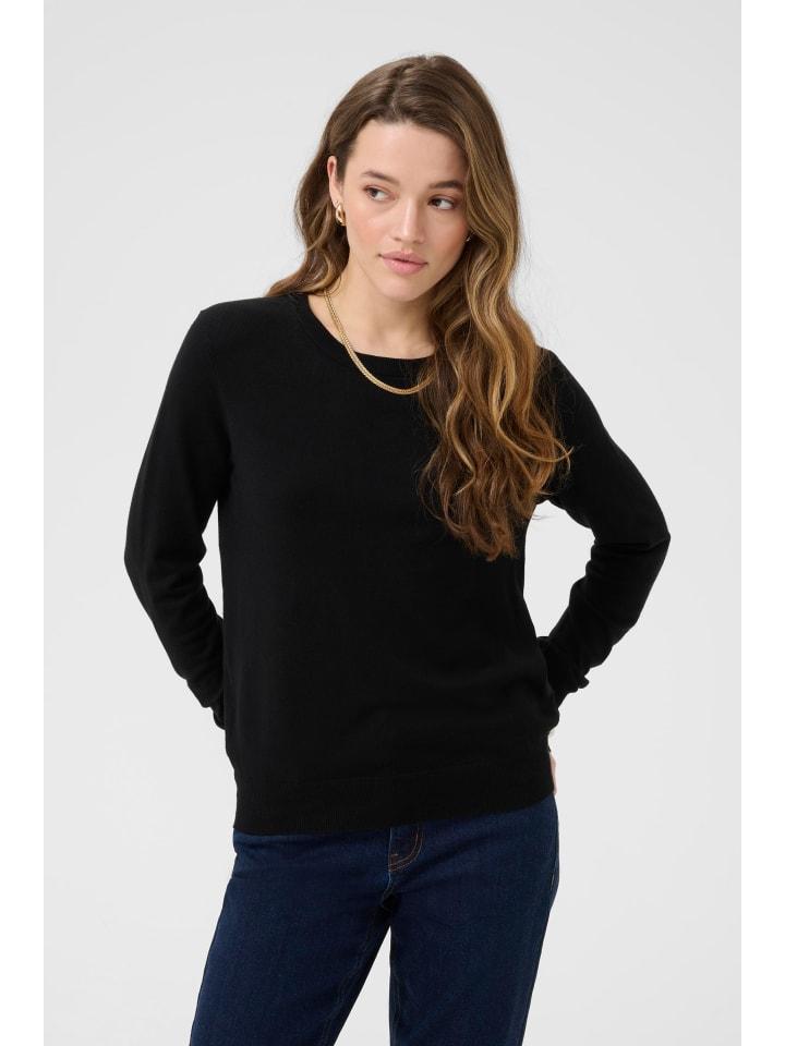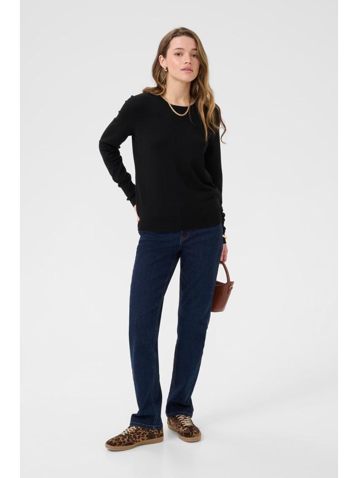 Классический свитер с круглым вырезом прямого кроя и гладкой текстурой. Длинные рукава, ребристые манжеты и минималистичный дизайн создают современный стиль.