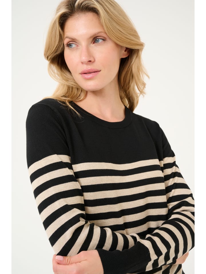 Этот полосатый трикотажный свитер - элегантный выбор для вашего гардероба. Приталенный крой и длинные рукава придают ему изысканность. Идеально подходит как для повседневной носки, так и для особых случаев.