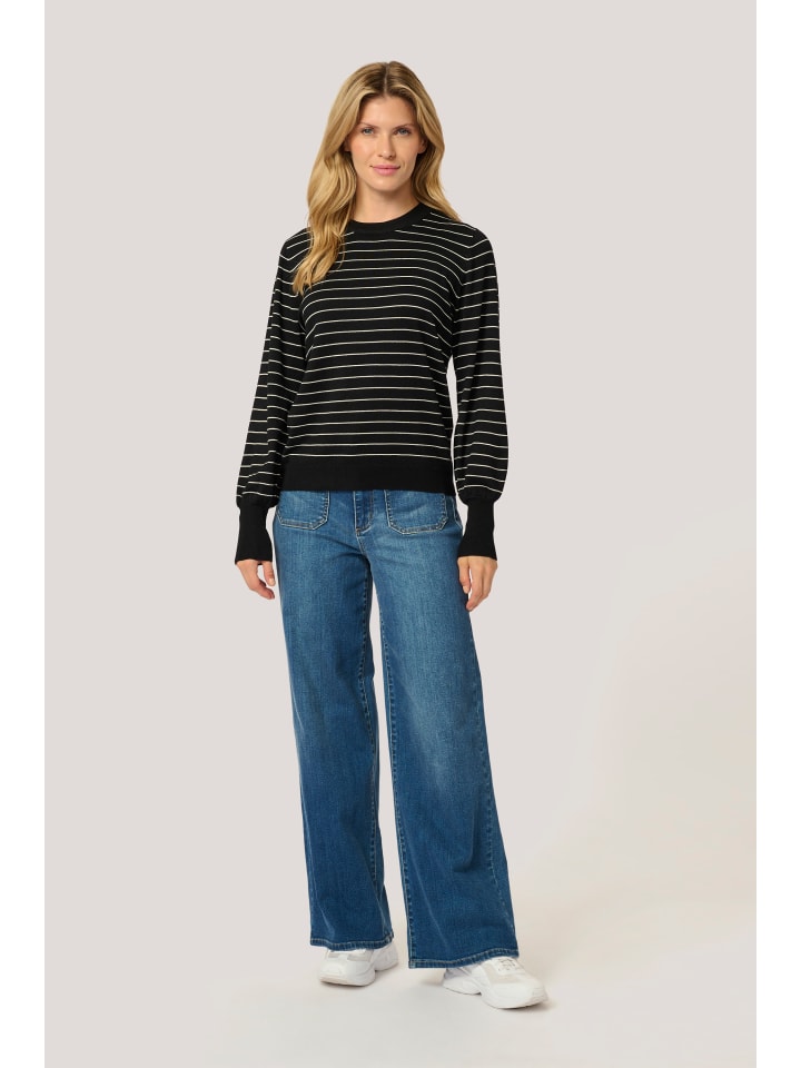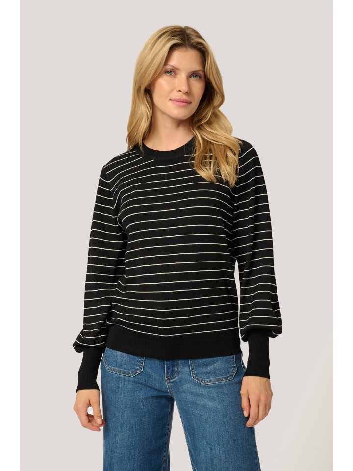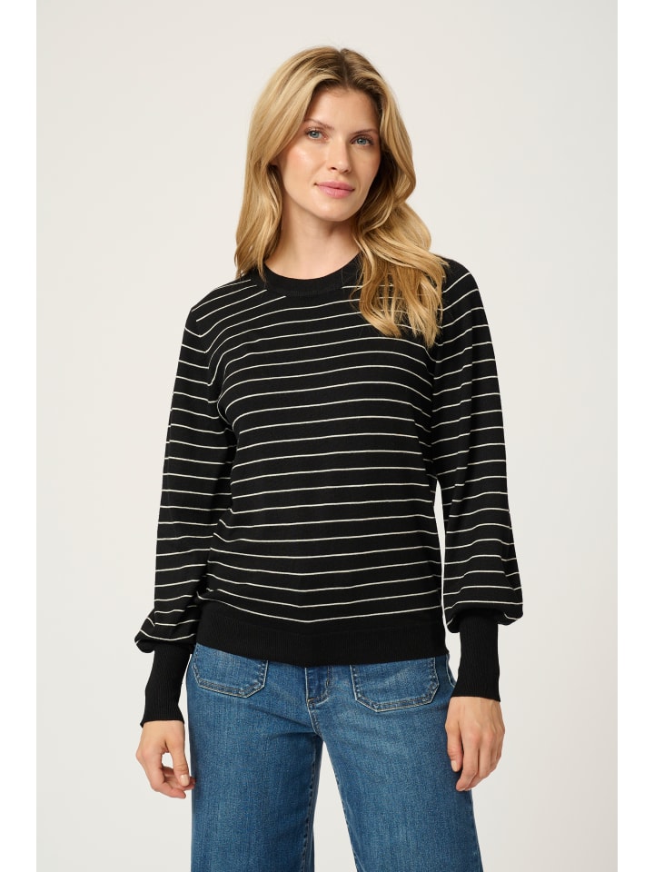 Свитер прямого кроя с круглым вырезом и длинными рукавами. Полосатый рисунок создает стильный, вневременный образ.