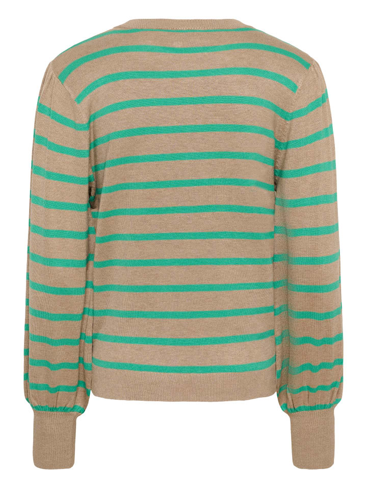Полосатый свитер с круглым вырезом, широкими рукавами и присборенными манжетами. Прямой крой обеспечивает комфортный силуэт.