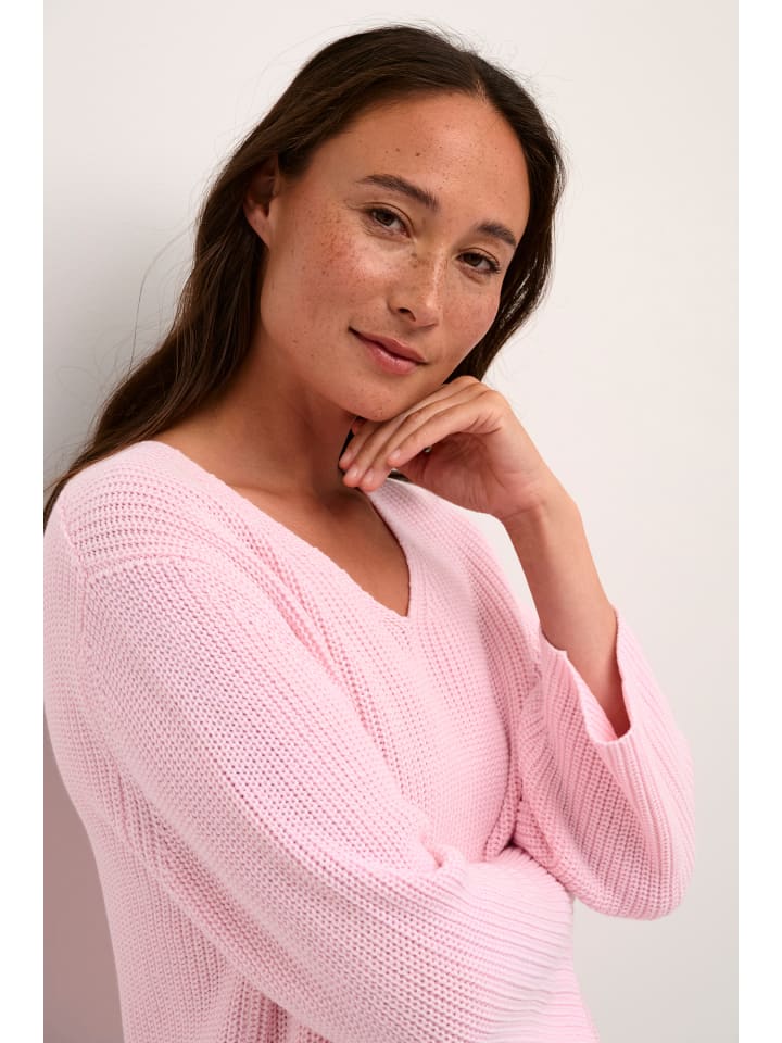 Свитер рубчатой вязки прямого кроя с V-образным вырезом и рукавами длиной 3/4. Структурированный вид для непринужденного, современного силуэта.