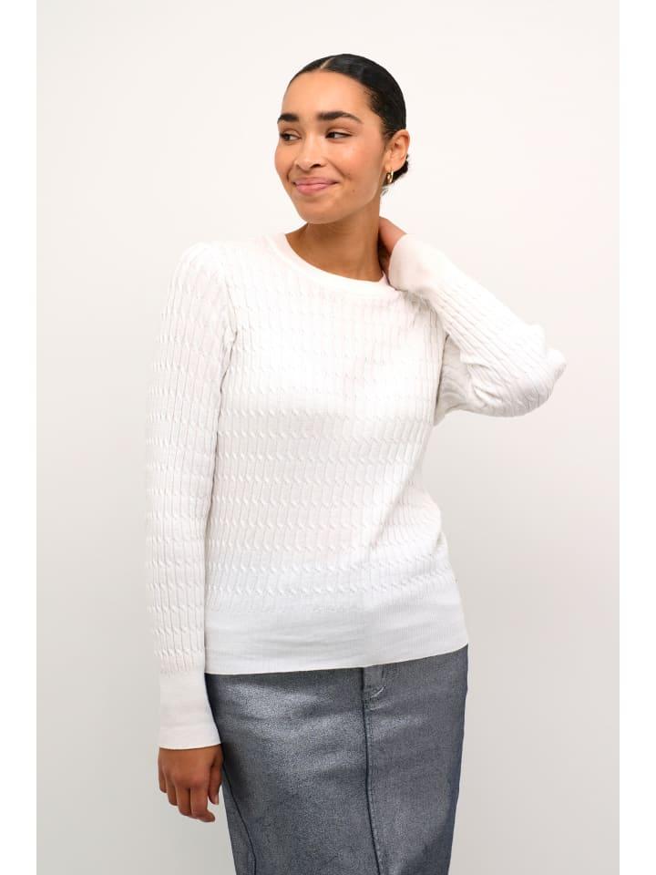 Приталенный трикотажный свитер с вертикальным рубчиком, круглым вырезом и длинными рукавами. Чистые линии и сдержанная элегантность.