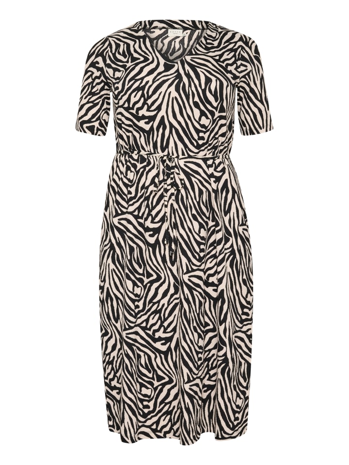 Это стильное платье миди свободного кроя с V-образным вырезом и короткими рукавами. Пояс на талии подчеркивает посадку и обеспечивает комфорт - идеально подходит для повседневной носки или любого случая.