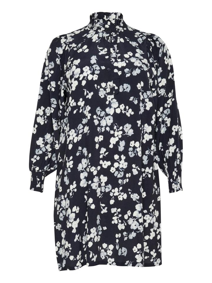 Это платье-туника впечатляет свободным кроем, оборкой на воротнике и длинными рукавами. Идеально подходит для создания универсальных образов и комфортной носки.