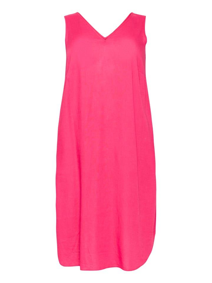 Платье миди без рукавов свободного кроя с V-образным вырезом и асимметричным подолом. Мягкий, дышащий материал обеспечивает высокий комфорт. Универсальные сочетания для самых разных случаев.