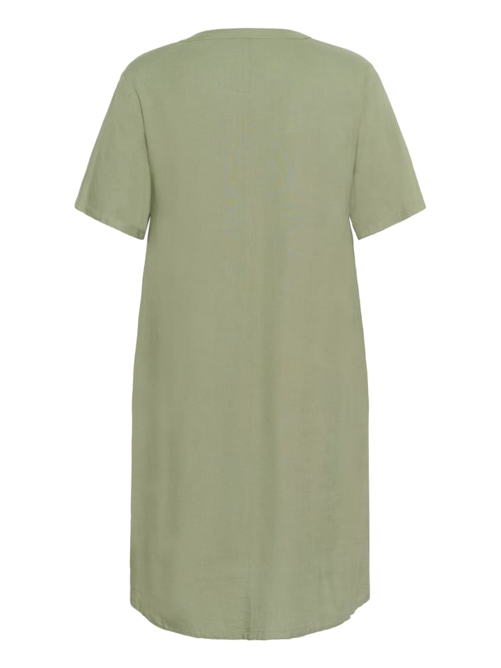 Это платье свободного кроя с современным вырезом, короткими рукавами и прямым силуэтом. Тонкие полоски и легкая ткань обеспечивают разнообразные возможности для комбинирования и комфортную посадку.