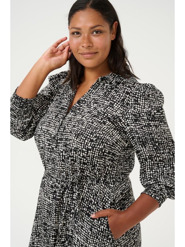 Платье-рубашка миди свободного кроя с классическим воротником, длинными рукавами и поясом на талии. Удобно носить, универсально для офиса и повседневной носки.