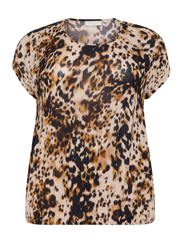 Женская блузка свободного кроя с короткими рукавами. Круглый вырез горловины и длина до бедер идеально подходят для создания универсальных образов.
