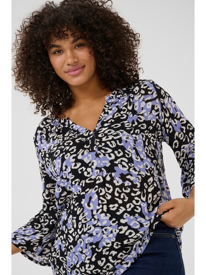 Эта блузка свободного кроя с V-образным вырезом и широкими рукавами длиной 3/4. Легкий материал обеспечивает комфорт в любой ситуации.