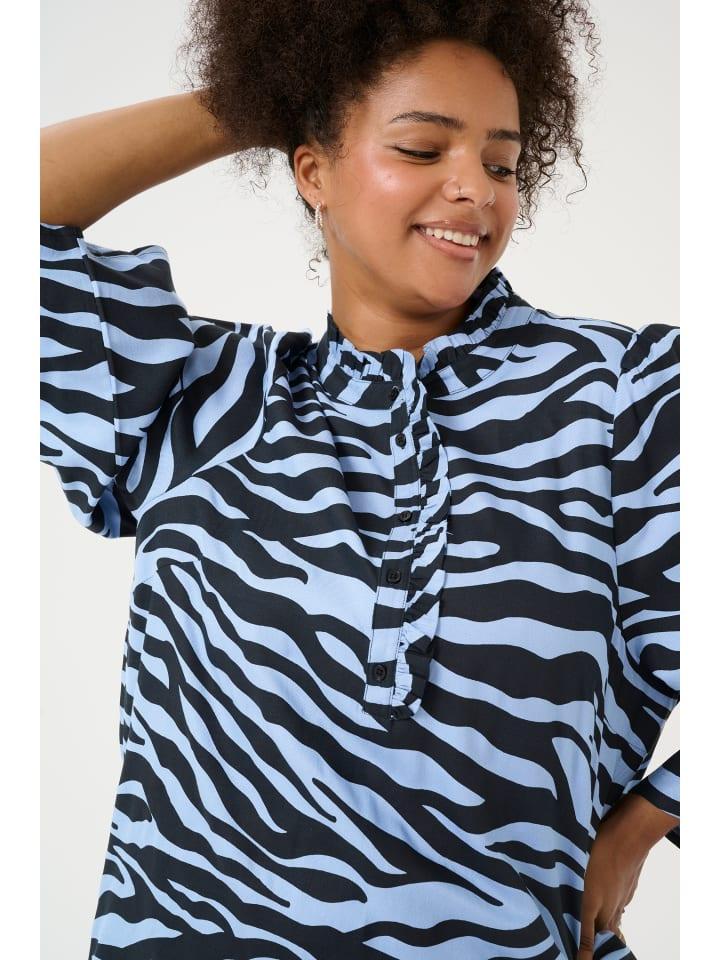 Эта современная блузка свободного кроя с воротником-стойкой и широкими рукавами обеспечивает максимальный комфорт и разнообразные возможности для создания стильных образов.