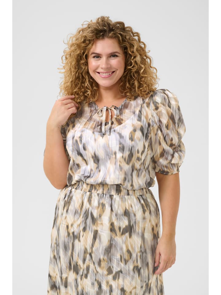 Эта блузка свободного кроя, с круглым вырезом на завязке и модными рукавами-буфами. Легкая ткань обеспечивает комфортную посадку - идеально подходит для повседневной носки и особых случаев.
