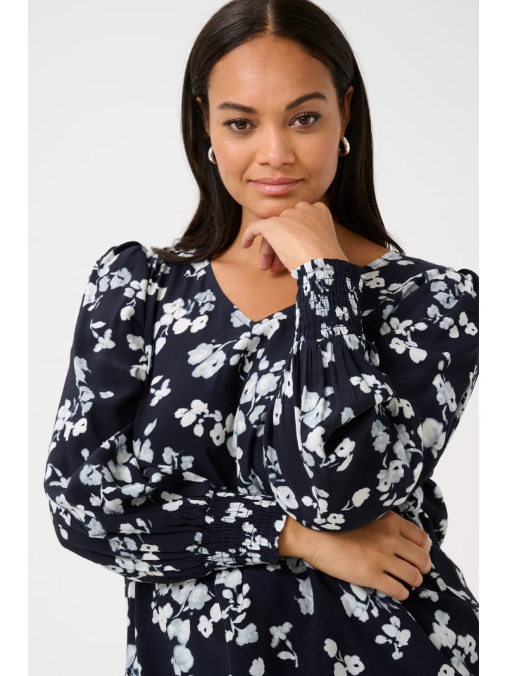 Блузка свободного кроя с V-образным вырезом и длинными рукавами с эластичными манжетами. Универсальная модель, обеспечивающая комфорт в любых ситуациях.