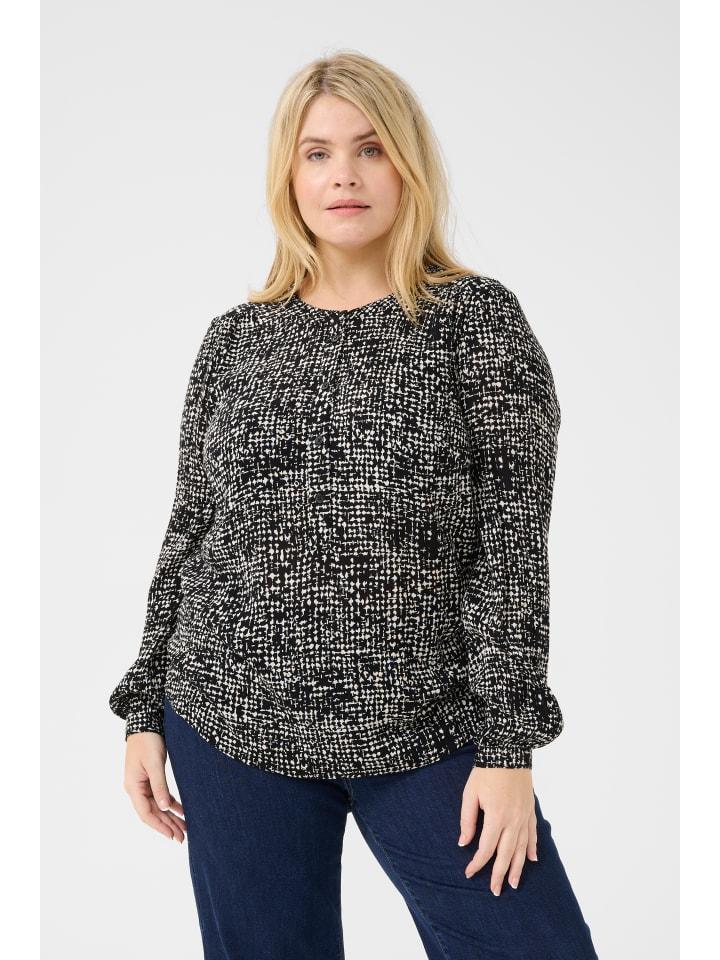 Эта блузка удобного свободного кроя с круглым вырезом, длинными рукавами и длиной до бедер. Идеально подходит для повседневной носки и работы.