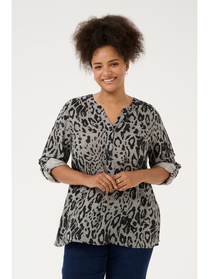 Женская блузка с удобным широким кроем, застежкой на пуговицы до середины бедра и V-образным вырезом. Универсальные сочетания для непринужденного повседневного образа.