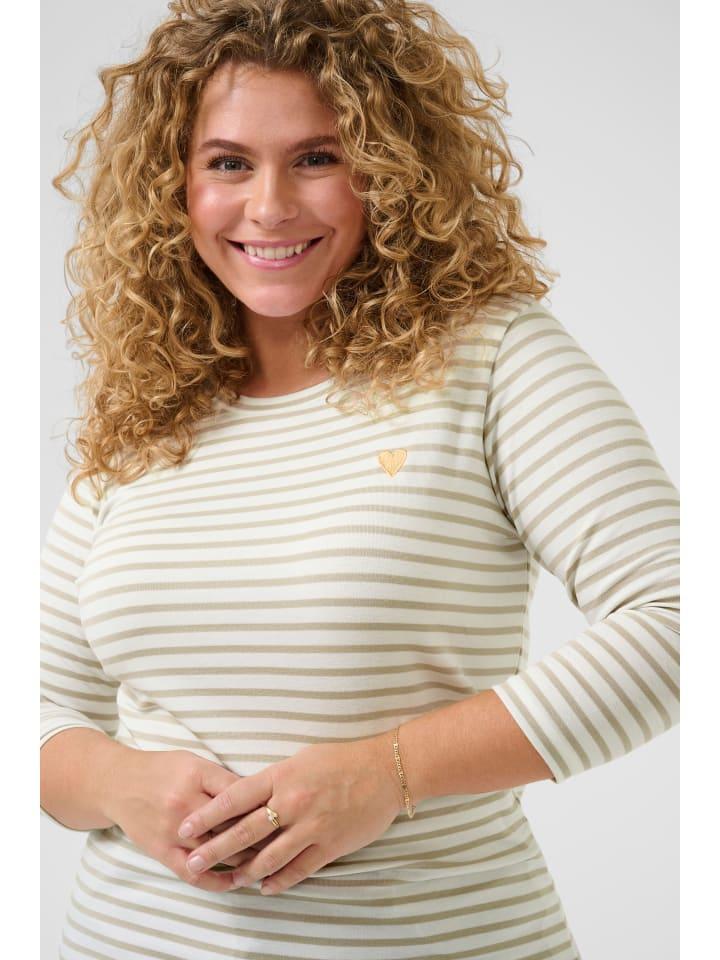 Футболка в полоску со стандартным кроем и классическим круглым вырезом. Рукава длиной 3/4 и мягкий материал обеспечивают комфорт и универсальность на весь день.