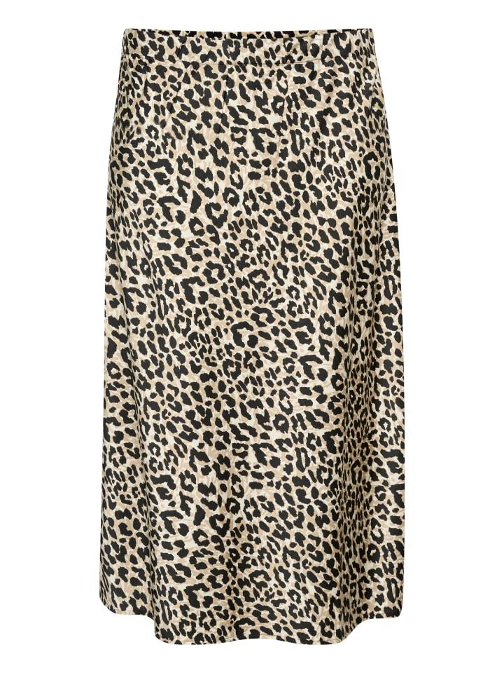 Юбка миди с леопардовым принтом, удобным эластичным поясом и струящимся А-образным силуэтом. Свободный крой обеспечивает комфорт и позволяет создавать разнообразные образы.