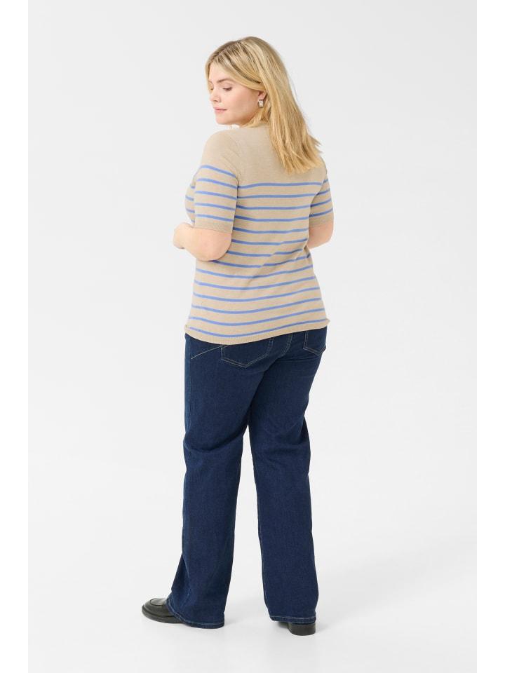 Этот женский трикотажный топ с короткими рукавами отличается удобным свободным кроем и классическим круглым вырезом. Универсальный и удобный - идеально подходит для повседневной носки и офиса.
