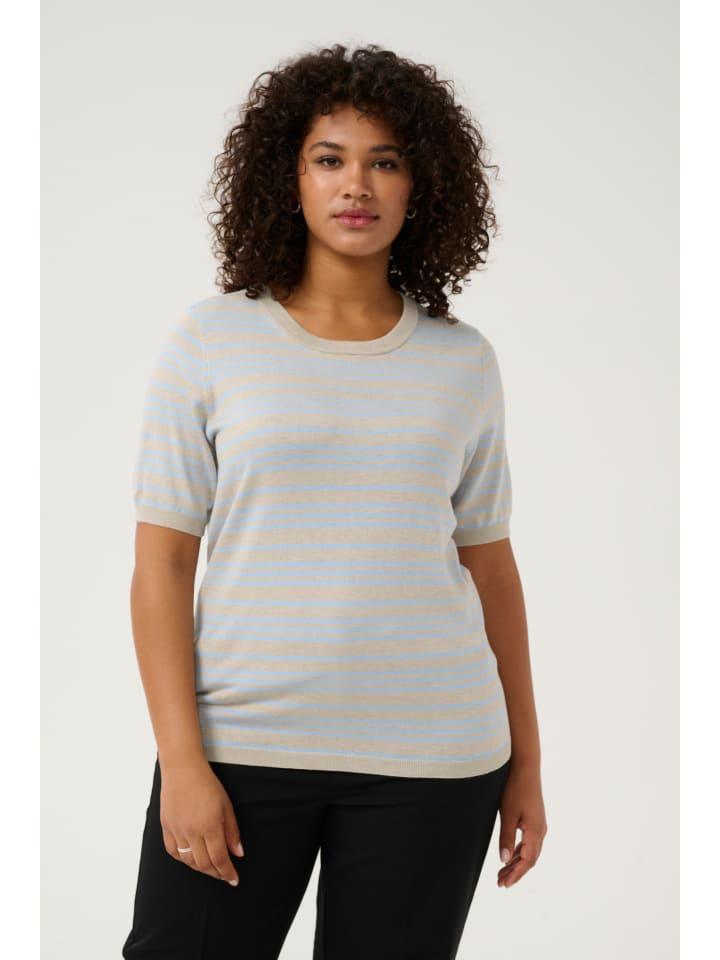 Этот женский трикотажный топ с короткими рукавами отличается удобным свободным кроем и классическим круглым вырезом. Универсальный и удобный - идеально подходит для повседневной носки и офиса.